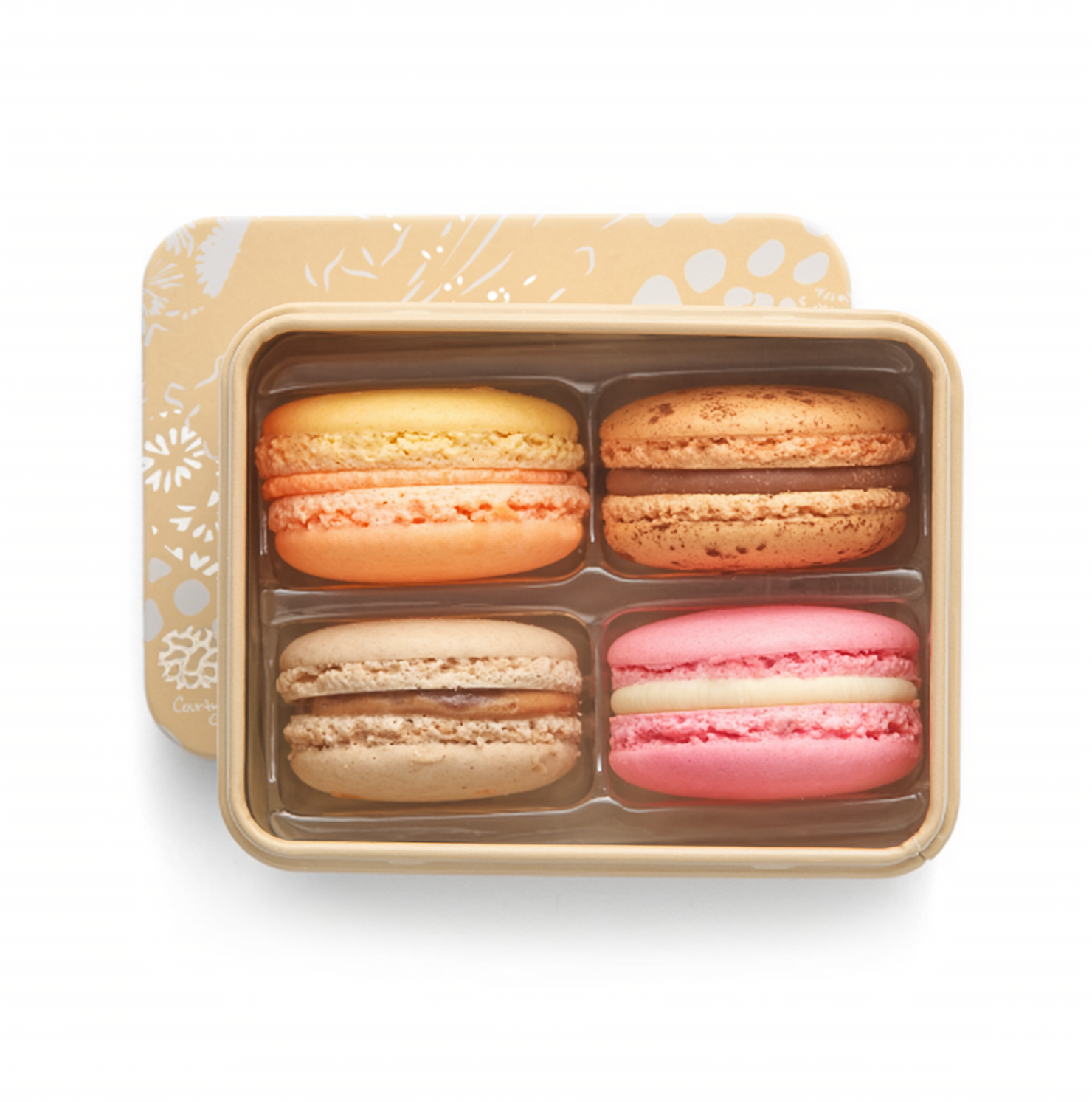Unsere Metallbox mit 4 Macarons ist die perfekte Wahl für alle, die Vielfalt lieben. Sorgfältig zusammengestellt, vereinen sich acht feine Macarons in einer eleganten Verpackung – ideal zum Teilen, Verschenken oder selbst Genießen.
